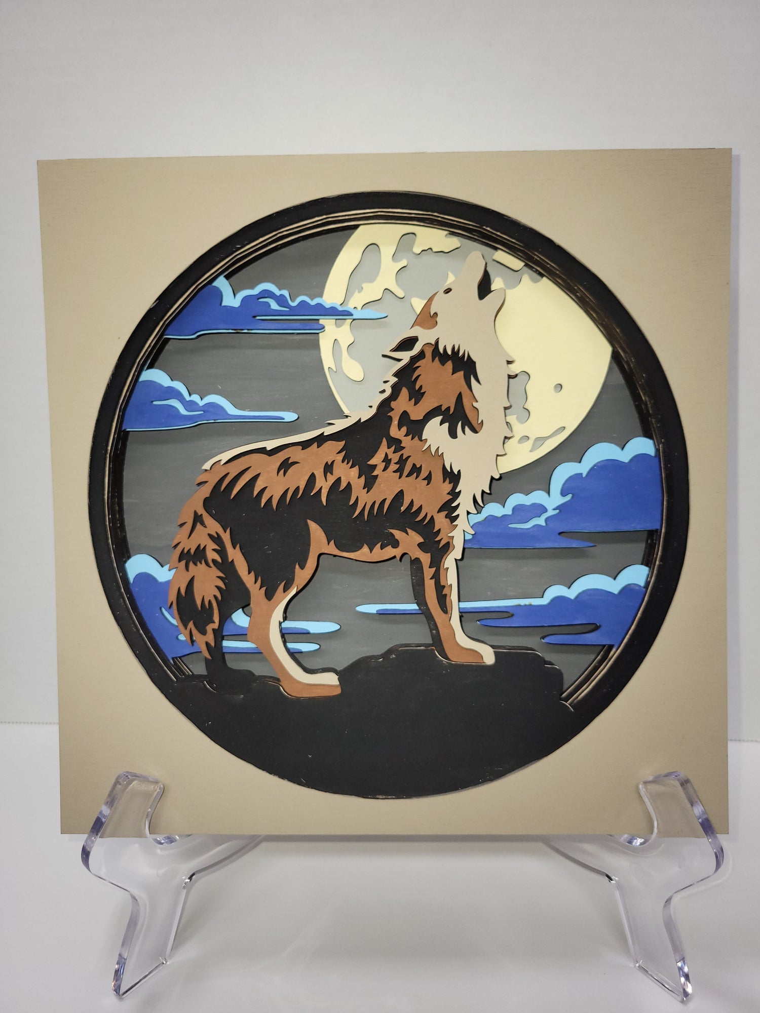 Wolf 3D Shadow Box | 10-Layer Hand-Painted Wilderness Art | Mountain Lodge & Cabin Wall Art | Veteran Made USA